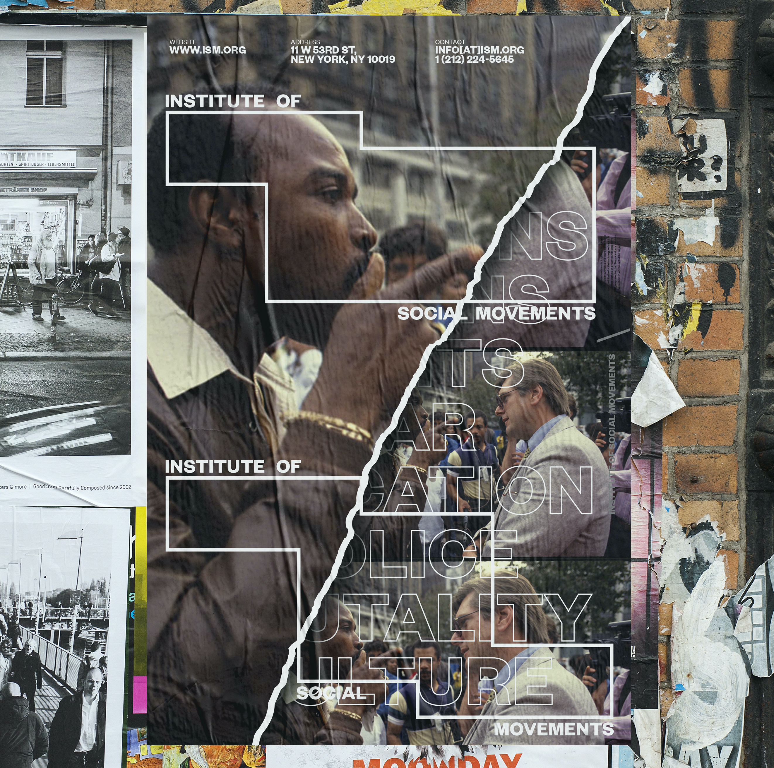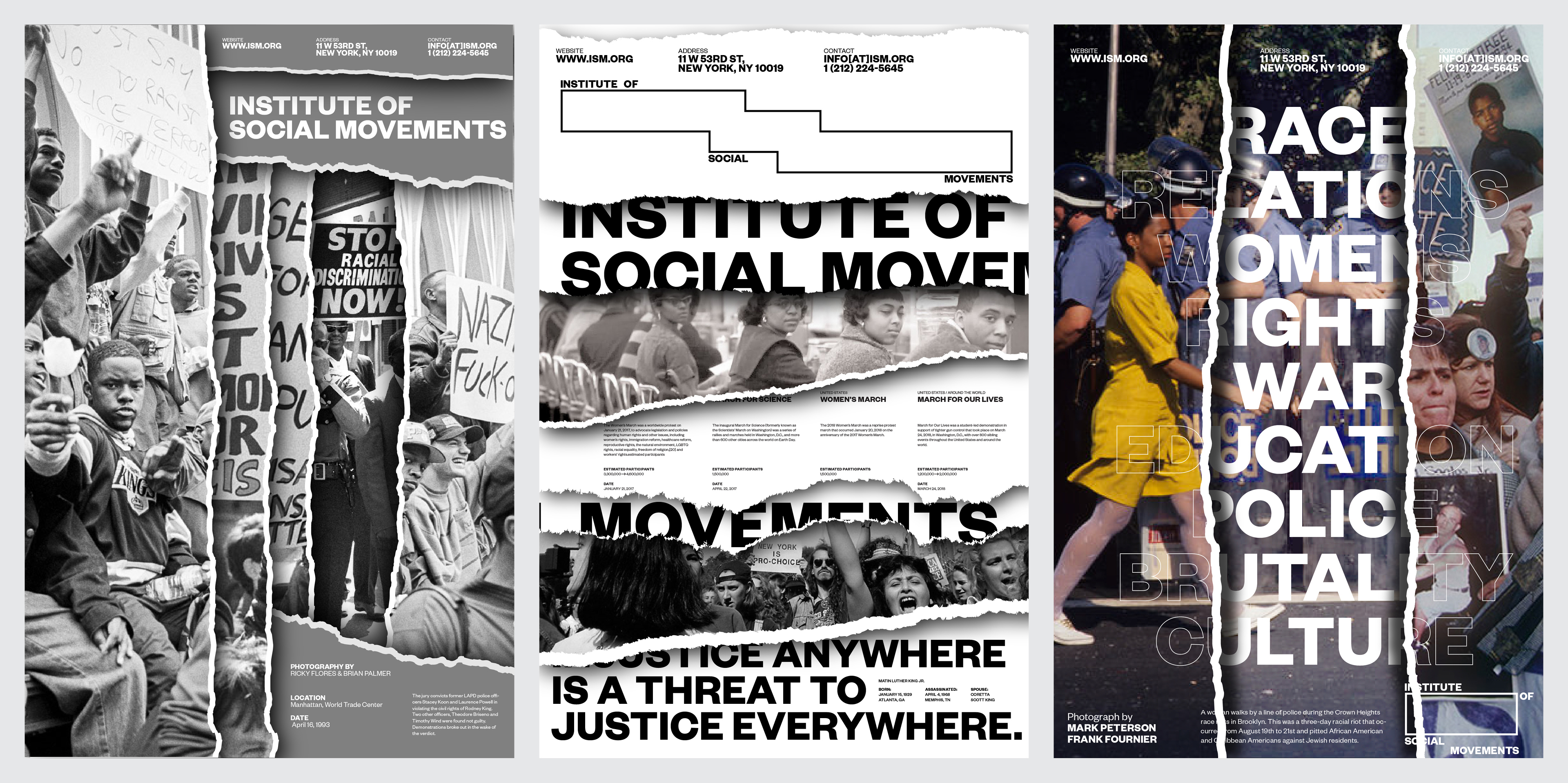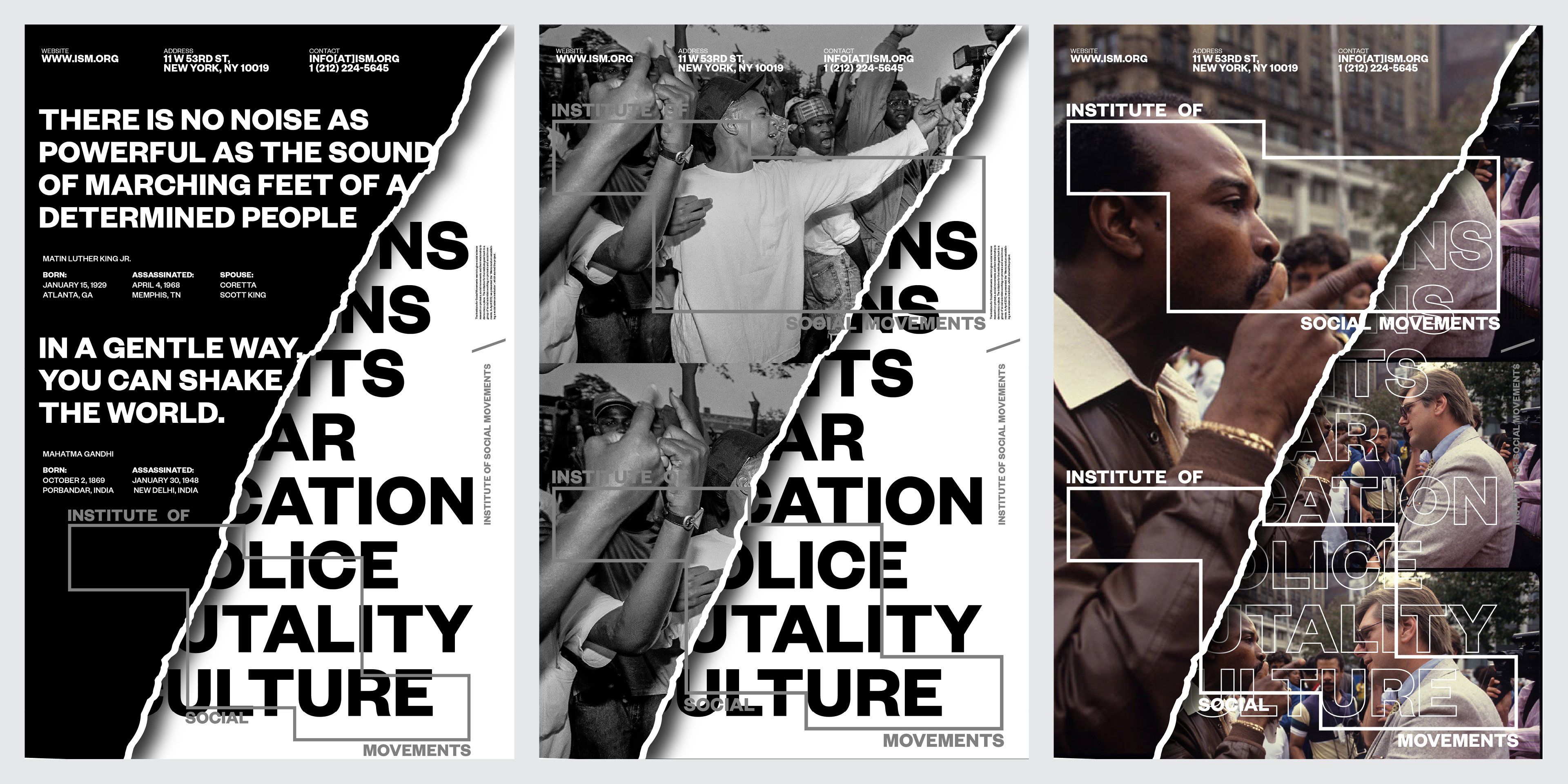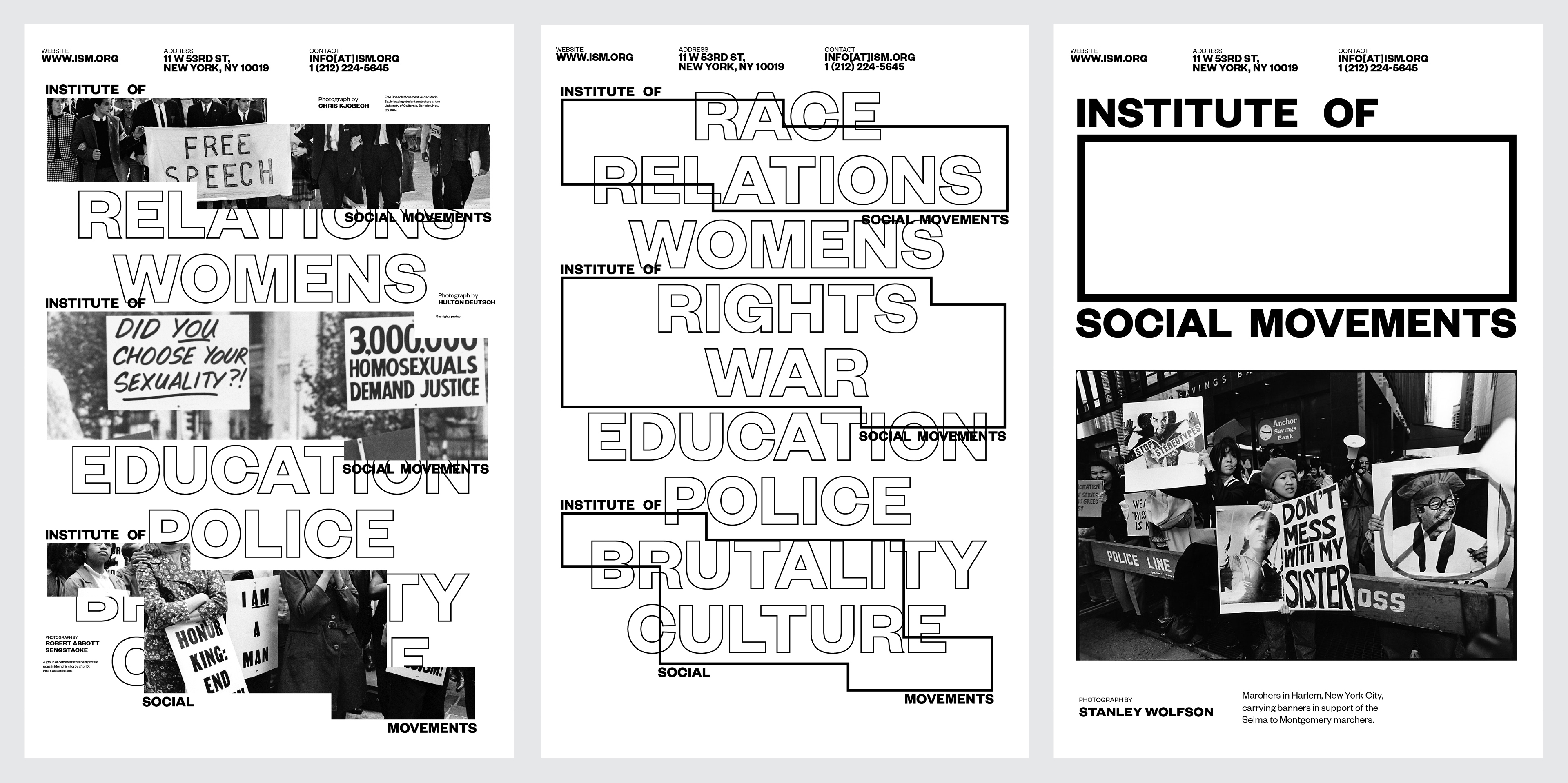 The Institute of Social Movements (ISM) documents the history of protests and their affects on society. The logo mirrors the posters of protesters.