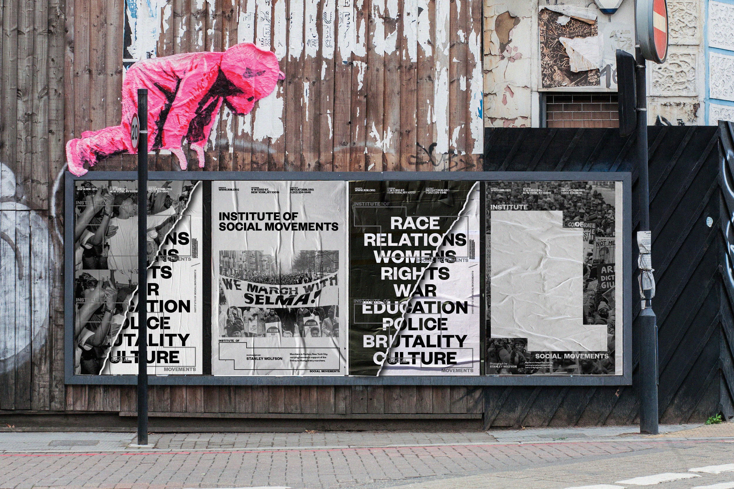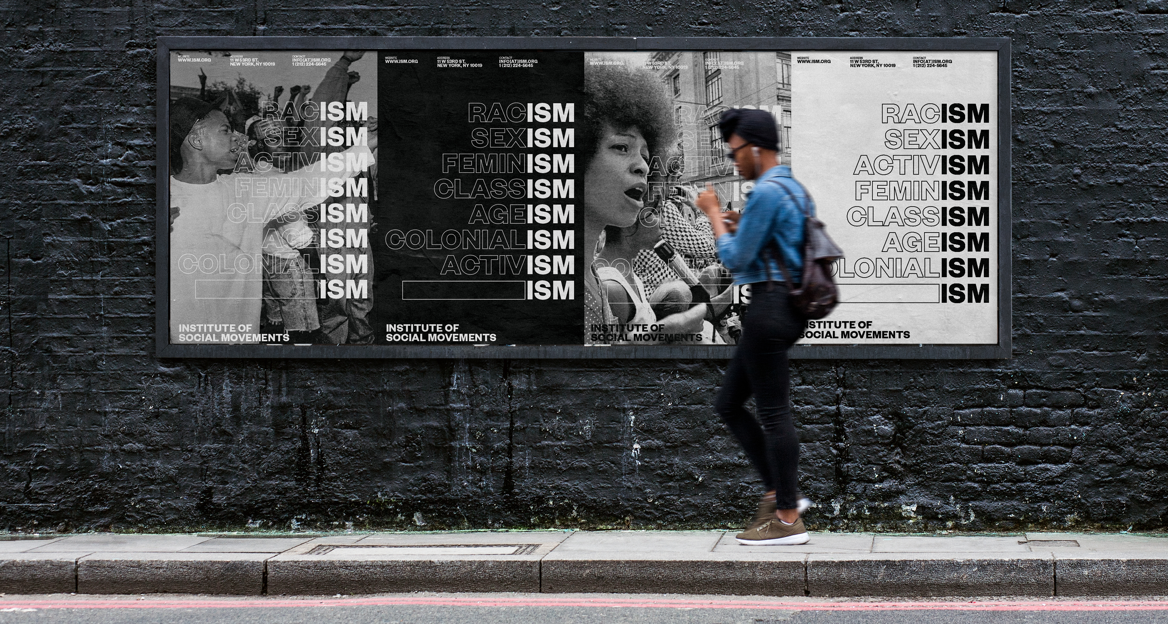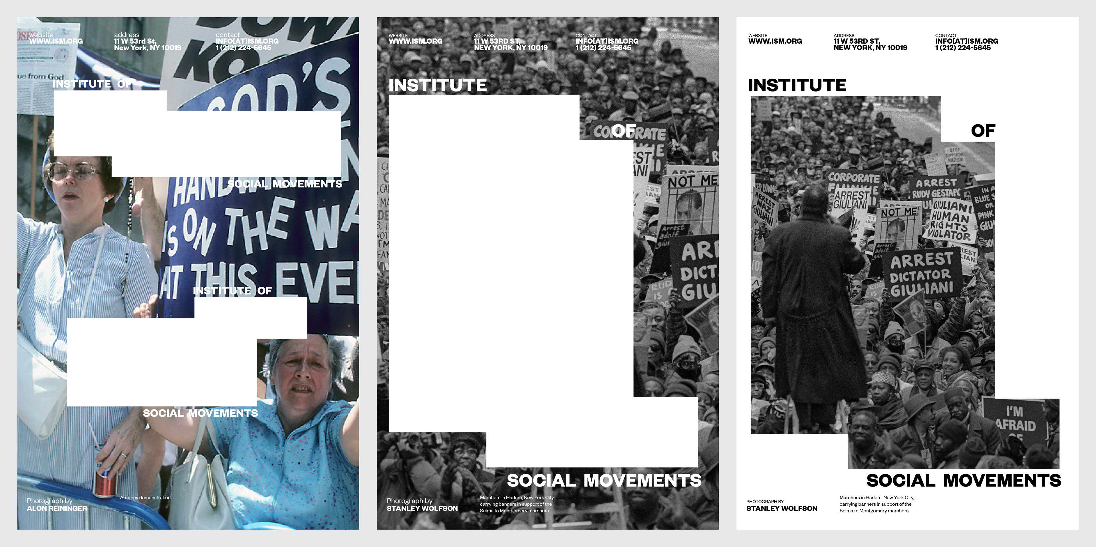 The Institute of Social Movements (ISM) documents the history of protests and their affects on society. The logo mirrors the posters of protesters.