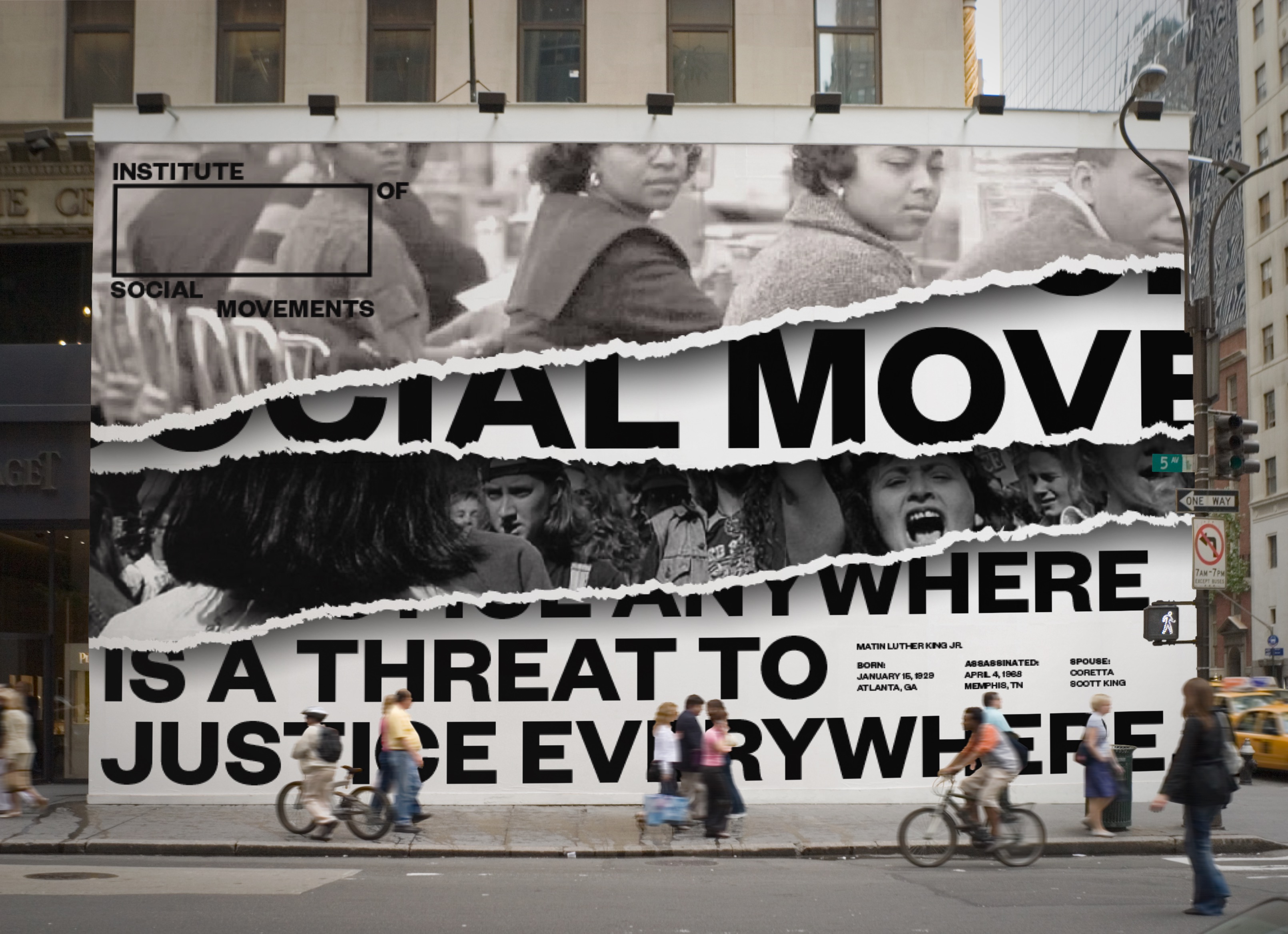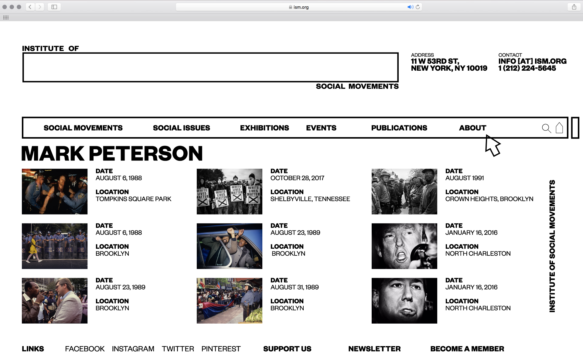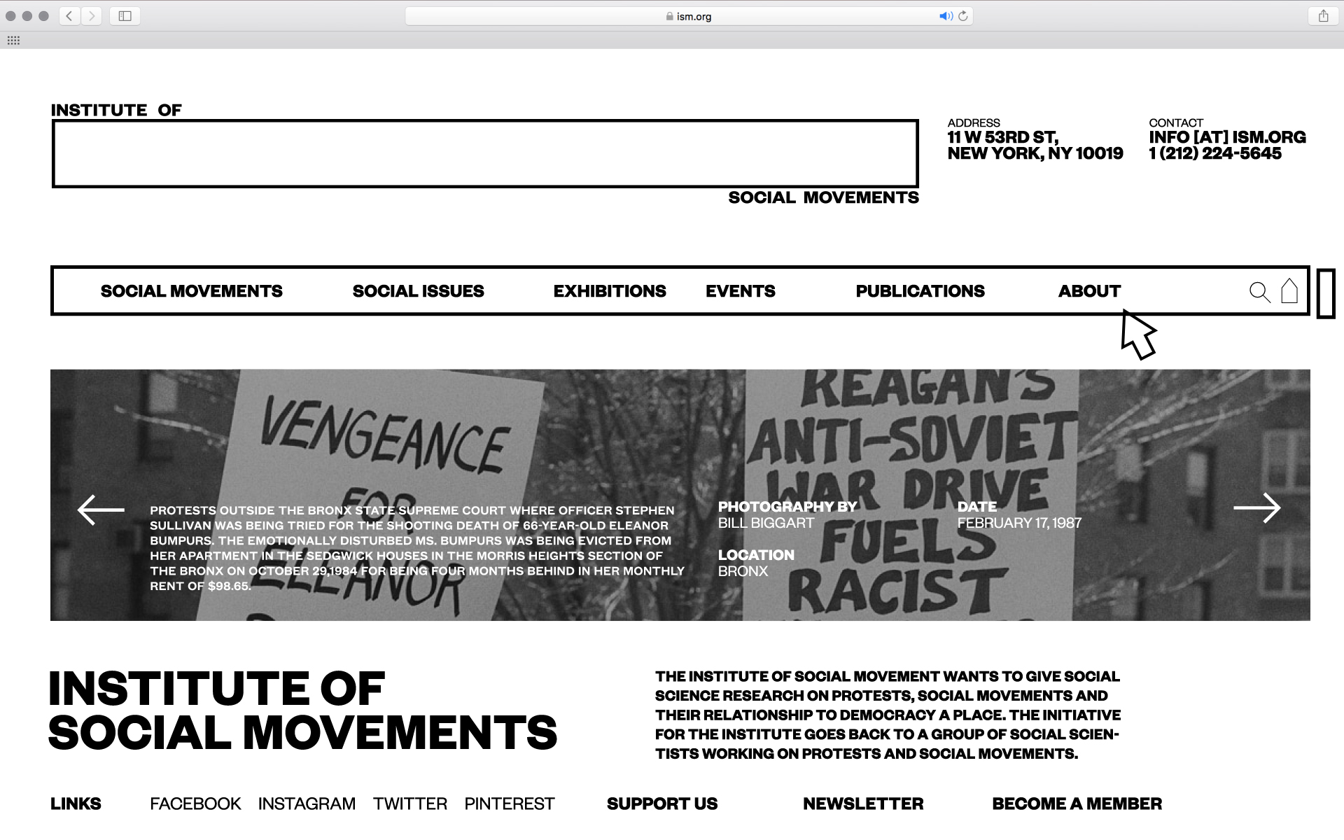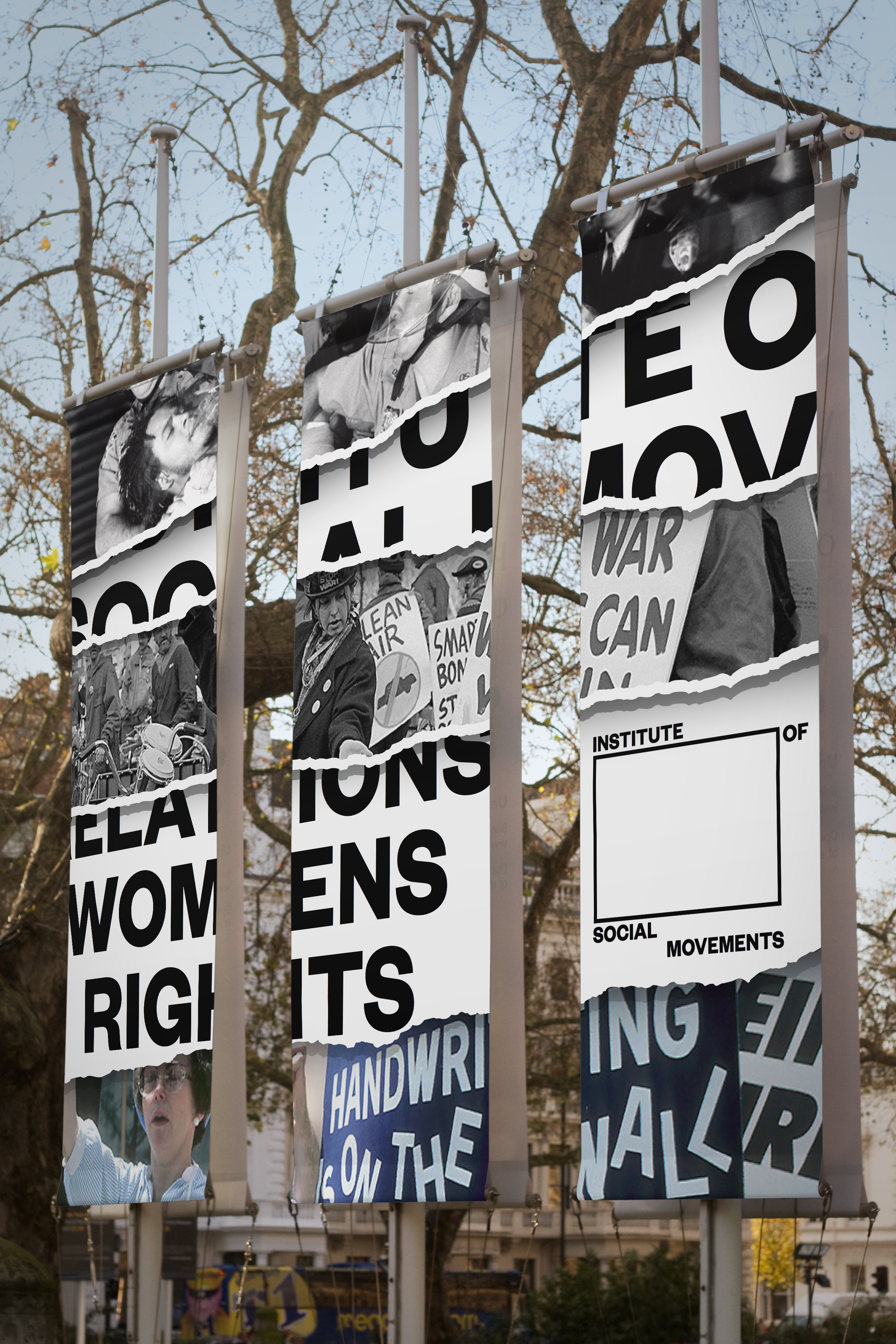 The Institute of Social Movements (ISM) documents the history of protests and their affects on society. The logo mirrors the posters of protesters.